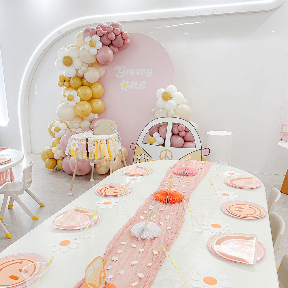 Select your preferred kit type (Essential or Standard) and garland size (Mini, Classic, or Grand) above. Whether you're styling a cozy at-home party or a full boho-inspired photo shoot, the Groovy One DIY Balloon Garland Kit makes it easy to create a warm, retro-inspired backdrop for your little one’s very groovy first birthday.