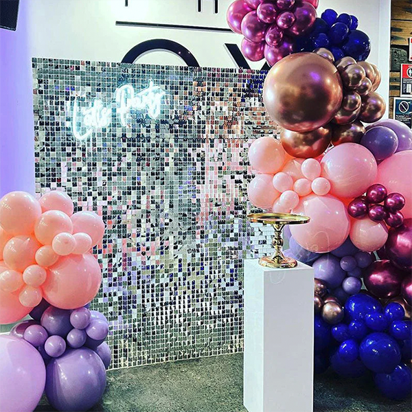 Use this sequin wall as a photo booth backdrop, behind a dessert or cake table, at a red-carpet entrance, or pair it with our neon signs, balloon garlands, plinths, or welcome signs for a fully styled, Instagram-worthy setup.
